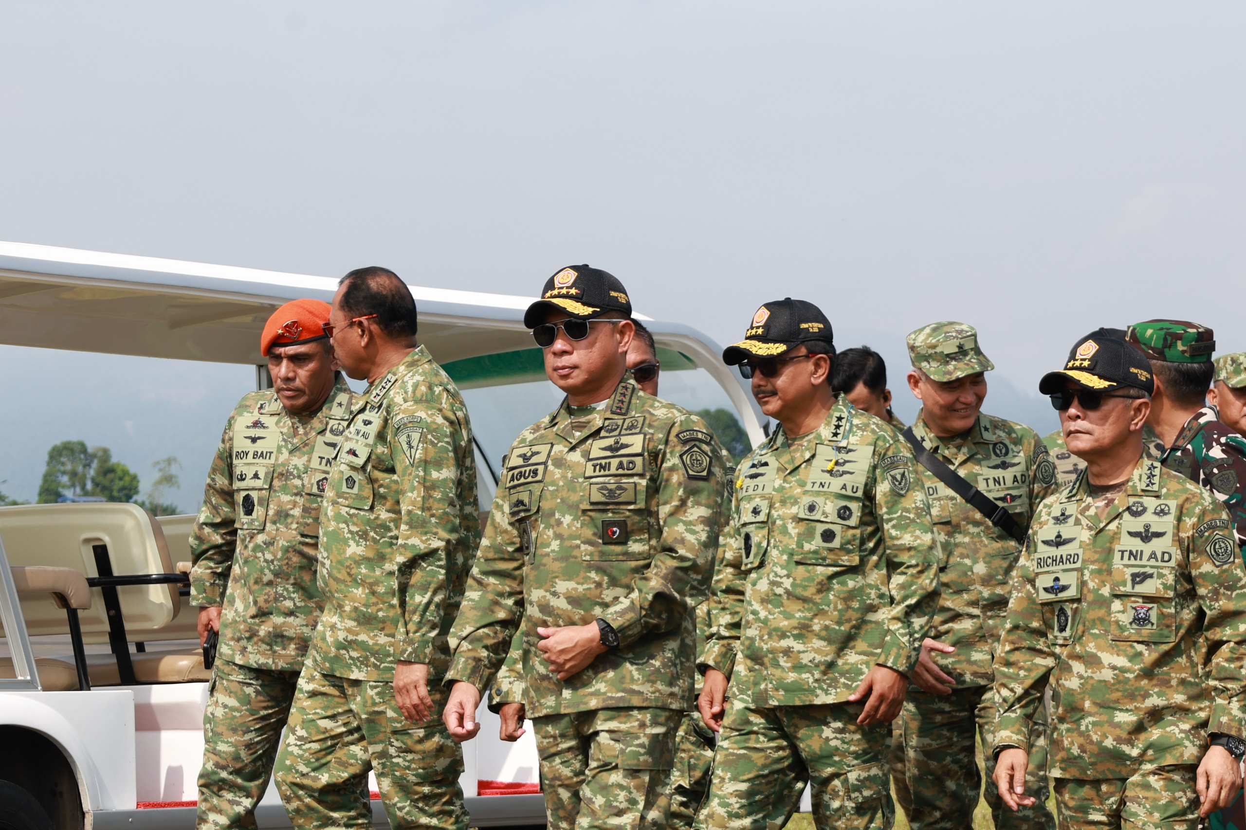 PIJARNUSA.COM – Panglima TNI Jenderal TNI Agus Subiyanto mendampingi Menteri Pertahanan RI Sjafrie Sjamsoeddin bersama Jaksa Agung ST Burhanuddin, Kepala BPKP Muhammad Yusuf beserta pejabat terkait, menyaksikan secara langsung pelaksanaan Latihan Komando Gabungan (Kogab) TNI yang terintegrasi Tahun 2025 di kawasan Bandara PT IMIP, Morowali, Sulawesi Tengah, Kamis (20/11/2025).