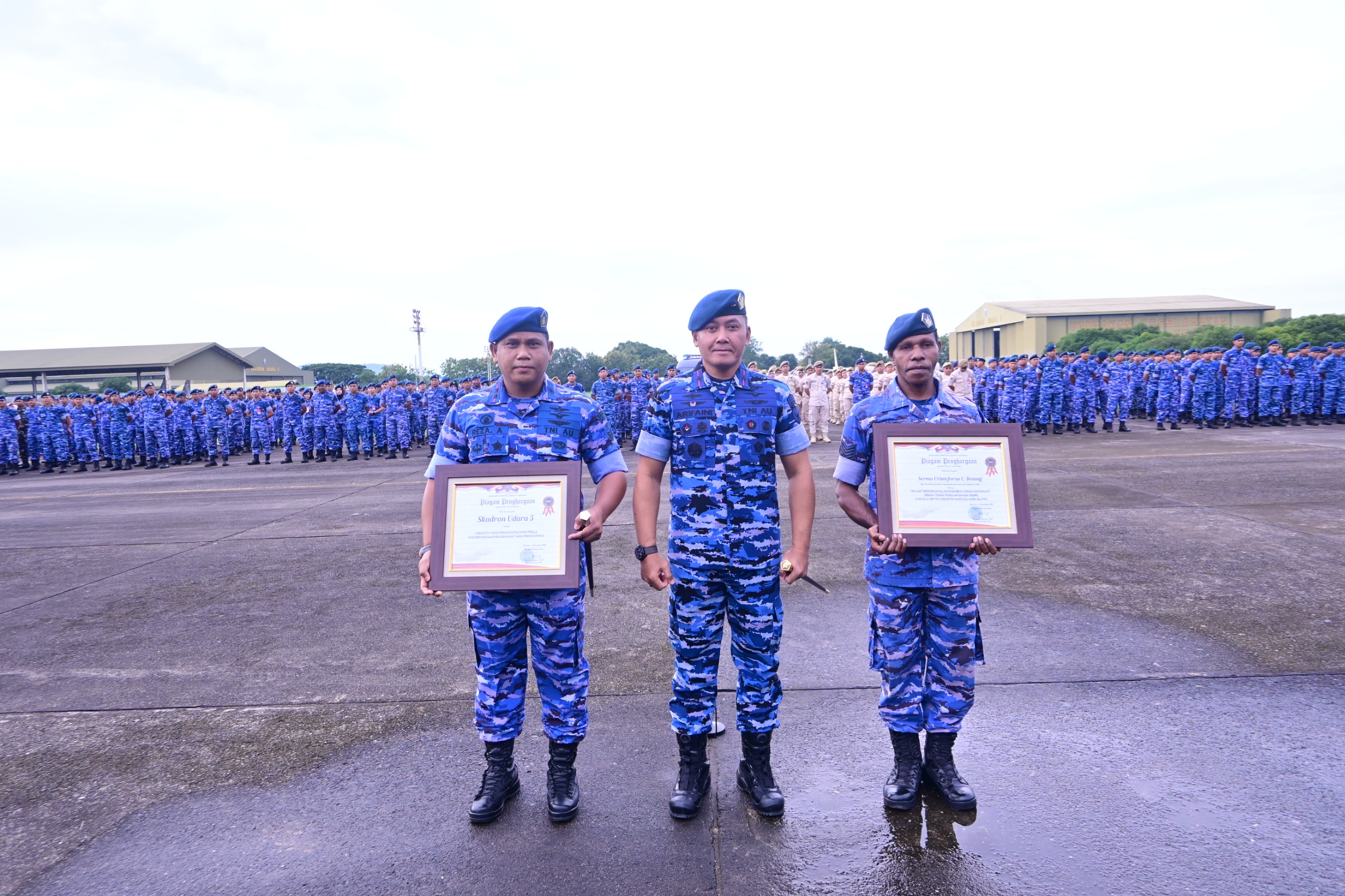 Seusai pelaksanaan Apel, Danlanud Sultan Hasanuddin juga memberikan apresiasi atas raihan penghargaan yang diberikan Koopsudnas kepada Skadron Udara 5 atas dedikasinya dalam pelaksanaan tugas operasi di Papua sebagai unsur intai tugas operasi Pamtas RI-PNG Trisula dan diterima langsung oleh Danskadron Udara 5 Letkol Pnb Reza Alkautsar, ST., selain itu penghargaan prajurit berdedikasi dalam pengabdian ke Masyarakat juga diberikan kepada Serma Cristeforus C. Betang, Ba Binter Lanud HND atas dedikasinya sebagai tenaga pengajar Bahasa Inggris di sekolah sekitar Kab. Maros.