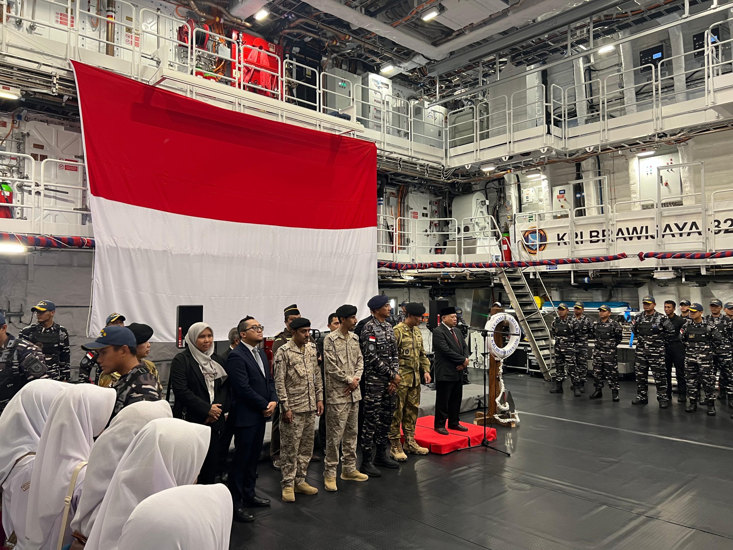Dalam sambutannya, Dubes RI LBBP untuk Arab Saudi menyampaikan ucapan selamat datang kepada seluruh personel KRI BWJ-320, menegaskan bahwa kedatangan kapal ini menjadi kebanggaan sekaligus bukti nyata modernisasi Alutsista TNI dan komitmen pemerintah dalam mewujudkan Indonesia sebagai negara maritim yang kuat, berdaulat, dan mampu menjaga kedaulatan laut dari pelanggaran negara lain. Dubes juga menyampaikan harapan adanya latihan bersama antara TNI AL dan Angkatan Laut Arab Saudi, khususnya di Laut Merah yang memiliki nilai strategis bagi perdagangan dan keamanan internasional.