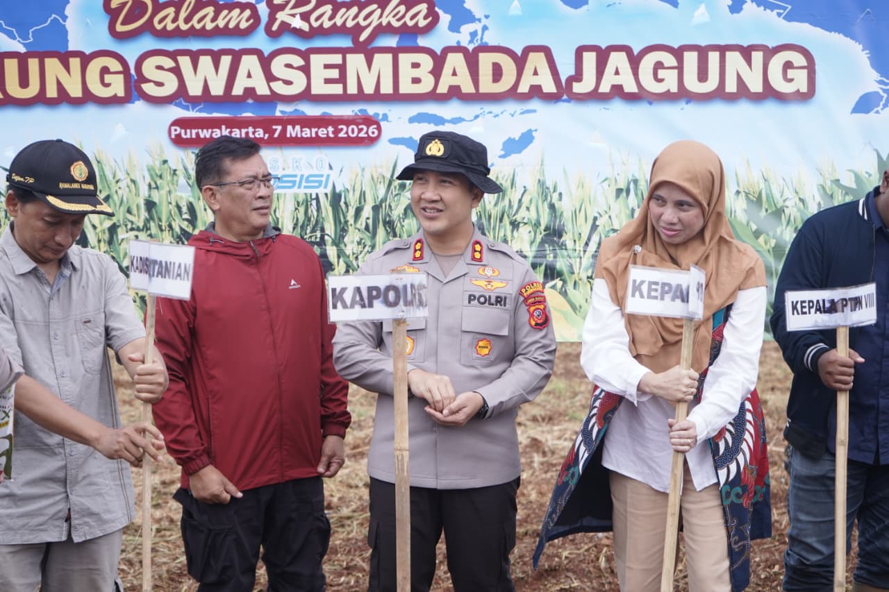 PURWAKARTA – Dalam rangka mendukung program ketahanan dan swasembada pangan nasional tahun 2026, Polres Purwakarta mengikuti kegiatan Penanaman Jagung Serentak Kuartal I Tahun 2026 yang dilaksanakan di Kampung Cikumpay, RT 15/04, Desa Cikumpay, Kecamatan Campaka, Kabupaten Purwakarta, pada Sabtu, 7 Maret 2026.