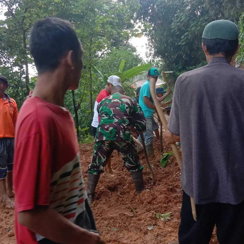 Jalan Desa di Kampung Belendung Tertutup Tanah Longsor