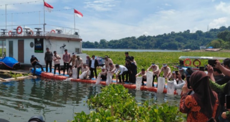 Tak hanya seremonial, kegiatan ini juga sarat makna. Selain penyerahan kartu BPJS Ketenagakerjaan secara simbolis kepada anggota KTNA sebagai bentuk perlindungan kerja, acara juga diwarnai aksi nyata pelestarian lingkungan melalui penebaran 50.000 ekor bibit ikan nila di perairan Jatiluhur.