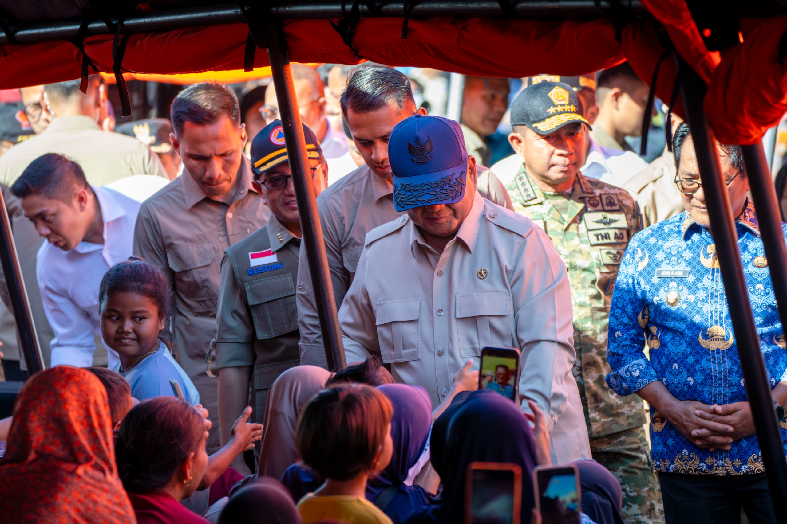 Dari tenda pengungsian, rombongan melanjutkan peninjauan ke dapur umum yang menjadi pusat penyediaan kebutuhan pangan. Presiden menyaksikan proses penyiapan makanan dan berdialog dengan warga mengenai kecukupan logistik, sementara Panglima TNI memastikan unsur TNI yang bertugas mendukung distribusi berjalan optimal. Upaya ini merupakan bagian dari dukungan penuh TNI dalam mempercepat pemenuhan kebutuhan dasar masyarakat terdampak.