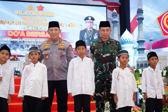 Pijarnusa.com – Panglima TNI Jenderal TNI Agus Subiyanto bersama Kapolri Jenderal Pol. Listyo Sigit Prabowo menghadiri Acara Silaturahmi dan Doa Bersama serta melaksanakan peninjauan pasukan dan peralatan TNI-Polri dalam rangka Pemilihan Kepala Daerah (Pilkada) Jawa Timur Tahun 2024, bertempat di Markas Kepolisian Daerah (Mapolda) Jawa Timur, Selasa, (19/11/2024).