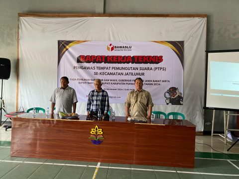 Pijarnusa.com – Panitia Pengawas Kecamatan (Panwascam) Jatiluhur menggelar rapat kerja teknis (Rakernis) Pengawas Tempat Pemungutan Suara (PTPS) di Gor Desa Kembangkuning, Senin (25/11/2024).