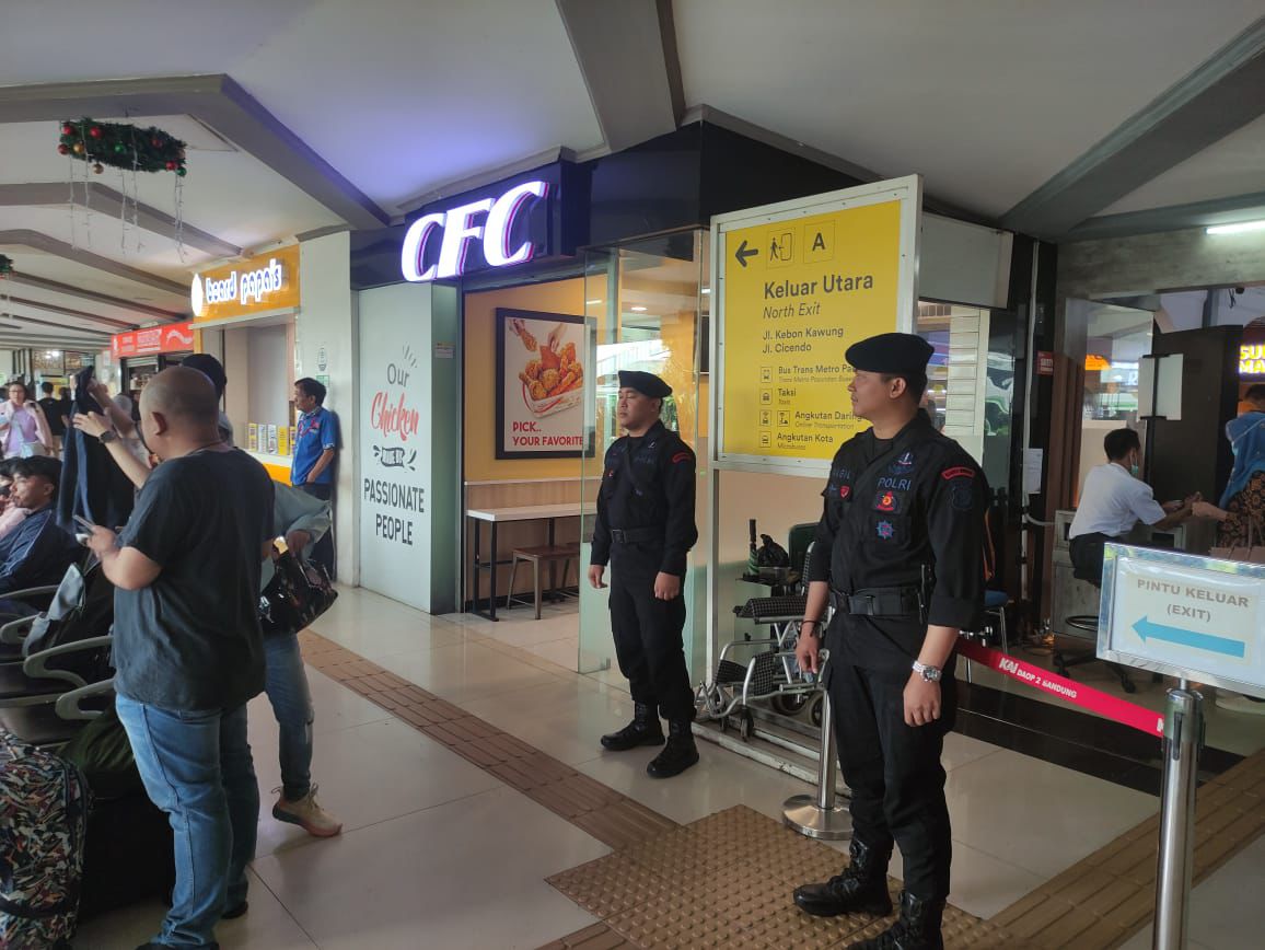 Sat Brimob Polda Jabar melibatkan puluhan personel yang tersebar di area strategis di sekitar stasiun, baik di dalam maupun di luar gedung. Mereka bertugas memastikan arus lalu lintas tetap lancar, melakukan pemeriksaan barang bawaan, serta memberikan rasa aman bagi seluruh pengunjung dan petugas stasiun.