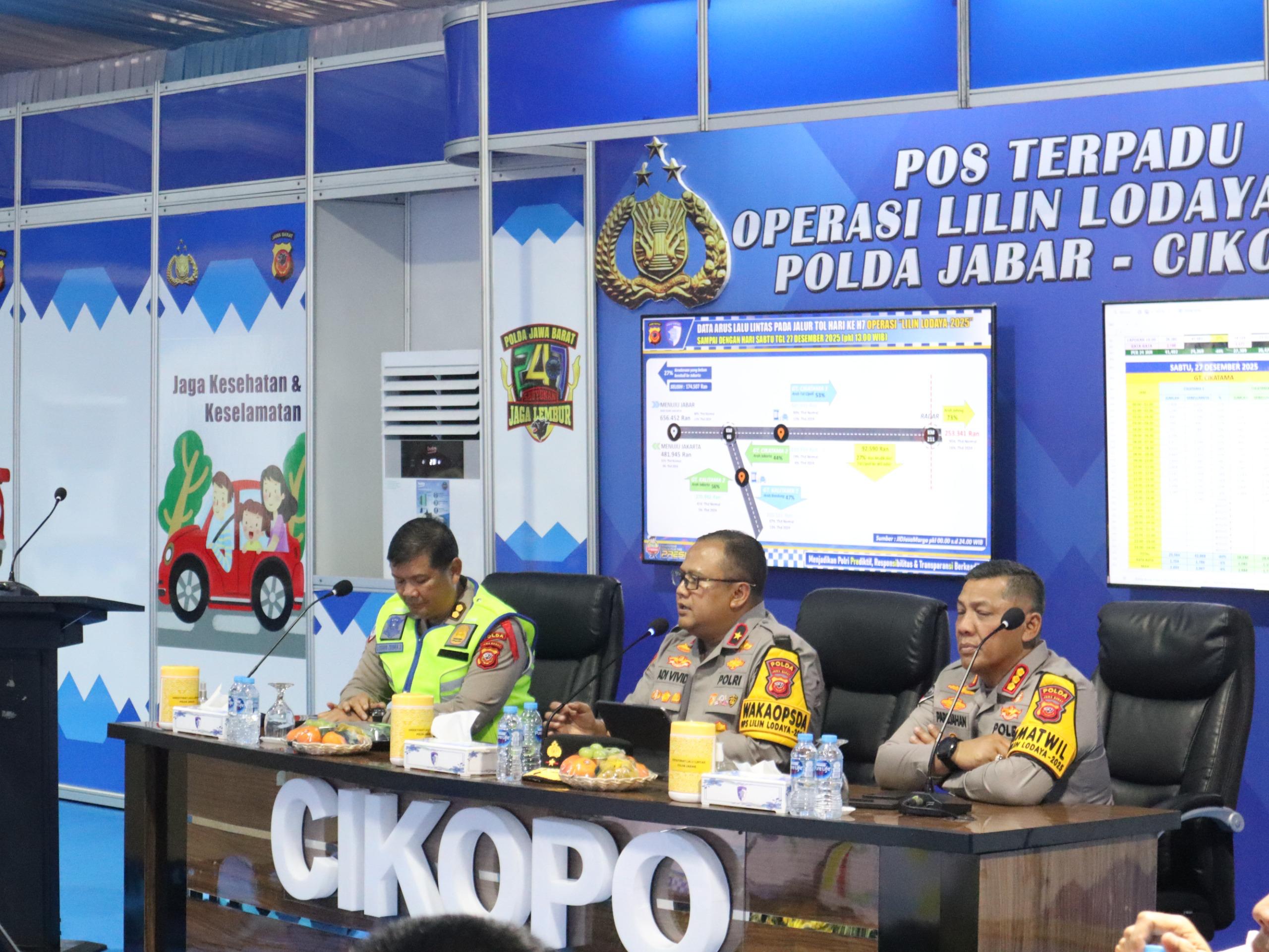 PURWAKARTA – Dalam rangka memastikan kesiapan personel dan sarana pendukung pengamanan arus lalu lintas pasca libur Tahun Baru, Wakil Kepala Kepolisian Daerah Jawa Barat melaksanakan kunjungan kerja ke Pos Terpadu Polda Jabar di Cikopo, Kabupaten Purwakarta, Pada Sabtu, 27 Desember 2025, sore.