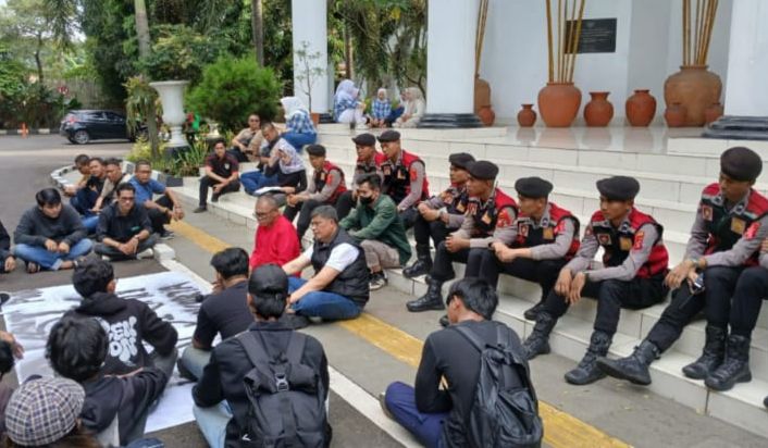 Aksi puluhan mahasiswa itu digelar Kantor Gedung DPRD Purwakarta menyoroti kekhawatiran masyarakat terhadap potensi kembalinya Dwifungsi TNI yang dianggap dapat mengancam demokrasi dan Hak Asasi Manusia di Indonesia.