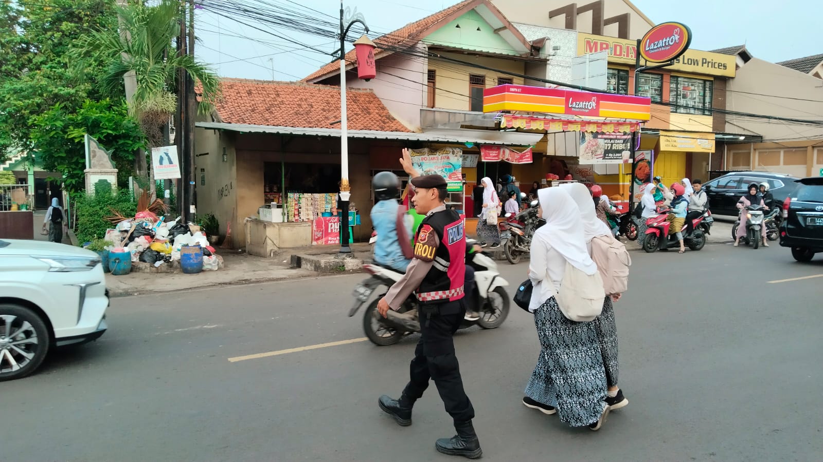 Seperti yang dilakukan Personil Samapta Polres Purwakarta mengatur Arus Lalu Lintas dan menyebrangkan masyarakat ataupun anak sekolah di wilayah Kabupaten Purwakarta.