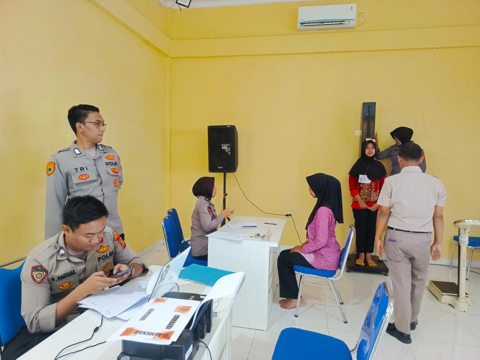 “Selain itu, panitia juga melakukan pengukuran tinggi dan berat badan peserta sebagai bagian dari persyaratan seleksi. Pemeriksaan ini akan menentukan lanjut tidaknya peserta dalam seleksi tahapan administrasi awal menuju tahapan selanjutnya di Polda Jabar,” Jelasnya.