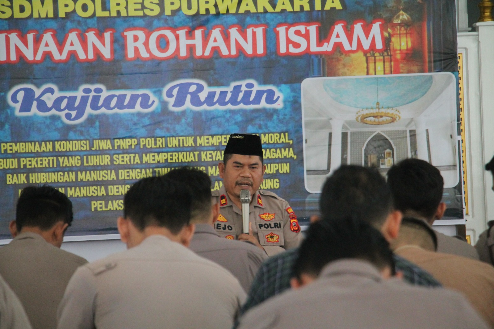 Kapolres Purwakarta AKBP I Dewa Putu Gede Anom Danujaya melalui Kasi Humas Polres Purwakarta AKP Enjang Sukandi menegaskan bahwa pembinaan rohani menjadi fondasi penting dalam membangun Polri yang kuat dan bersih dari pelanggaran.
