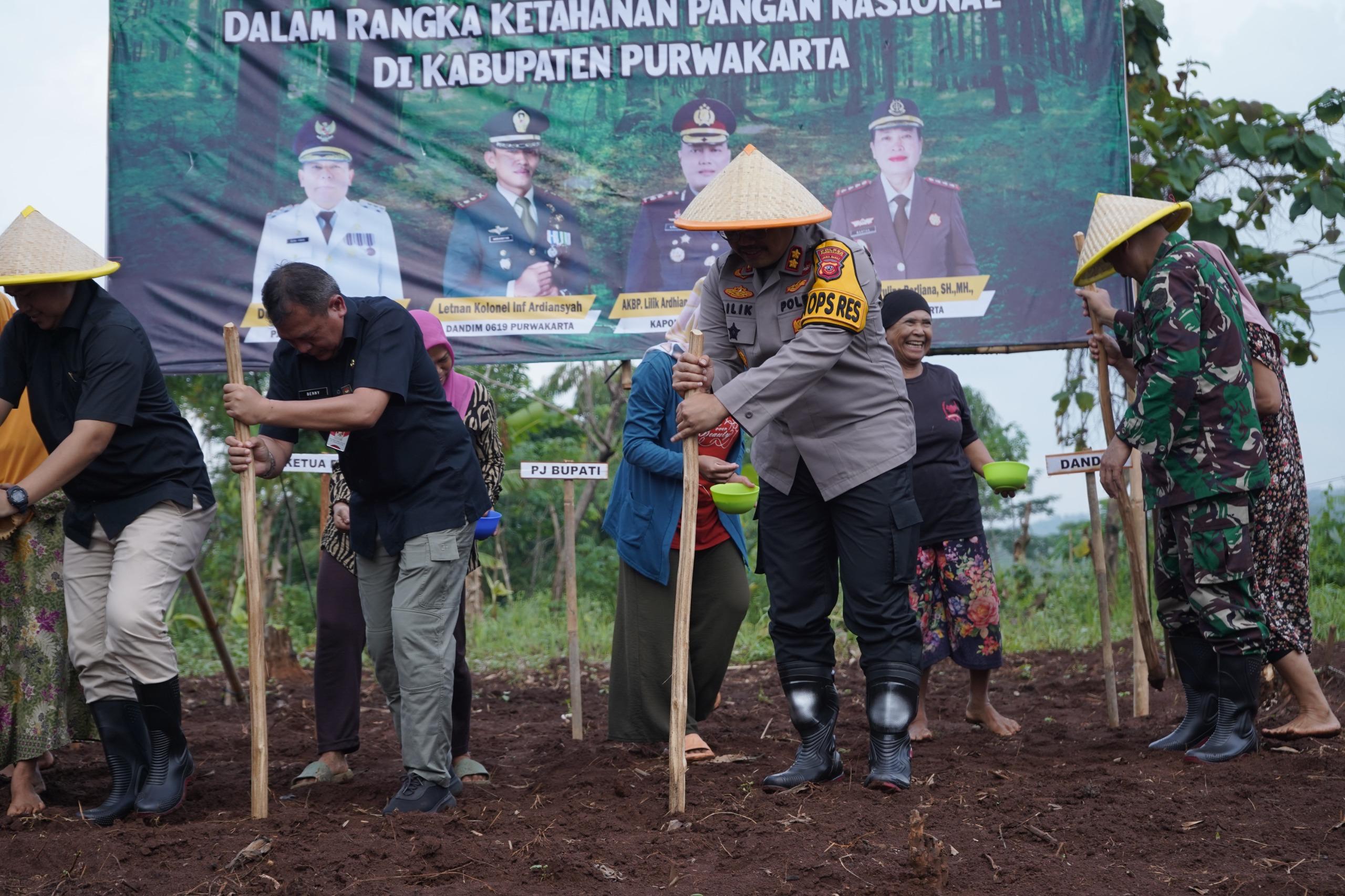PURWAKARTA – Kapolres Purwakarta, AKBP Lilik Ardiansyah ikuti gerakan tanam Padi Gogo di Kampung Ciwiru, Desa Benteng, Kecamatan Campaka, Kabupaten Purwakarta, Pada Senin, 18 November 2024.