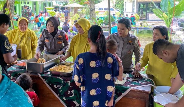 Dari obrolan ringan tersebut, lanjut Dandim, Kapolres ternyata meresponnya dengan positif. “Jadilah kita coba untuk dilaksanakan seperti saat ini. Ibu-ibu bersama Polwan yang menyiapkan masakan dan makanannya. Lainnya anggota Kodim dan Polres yang bantu,” ucapnya.