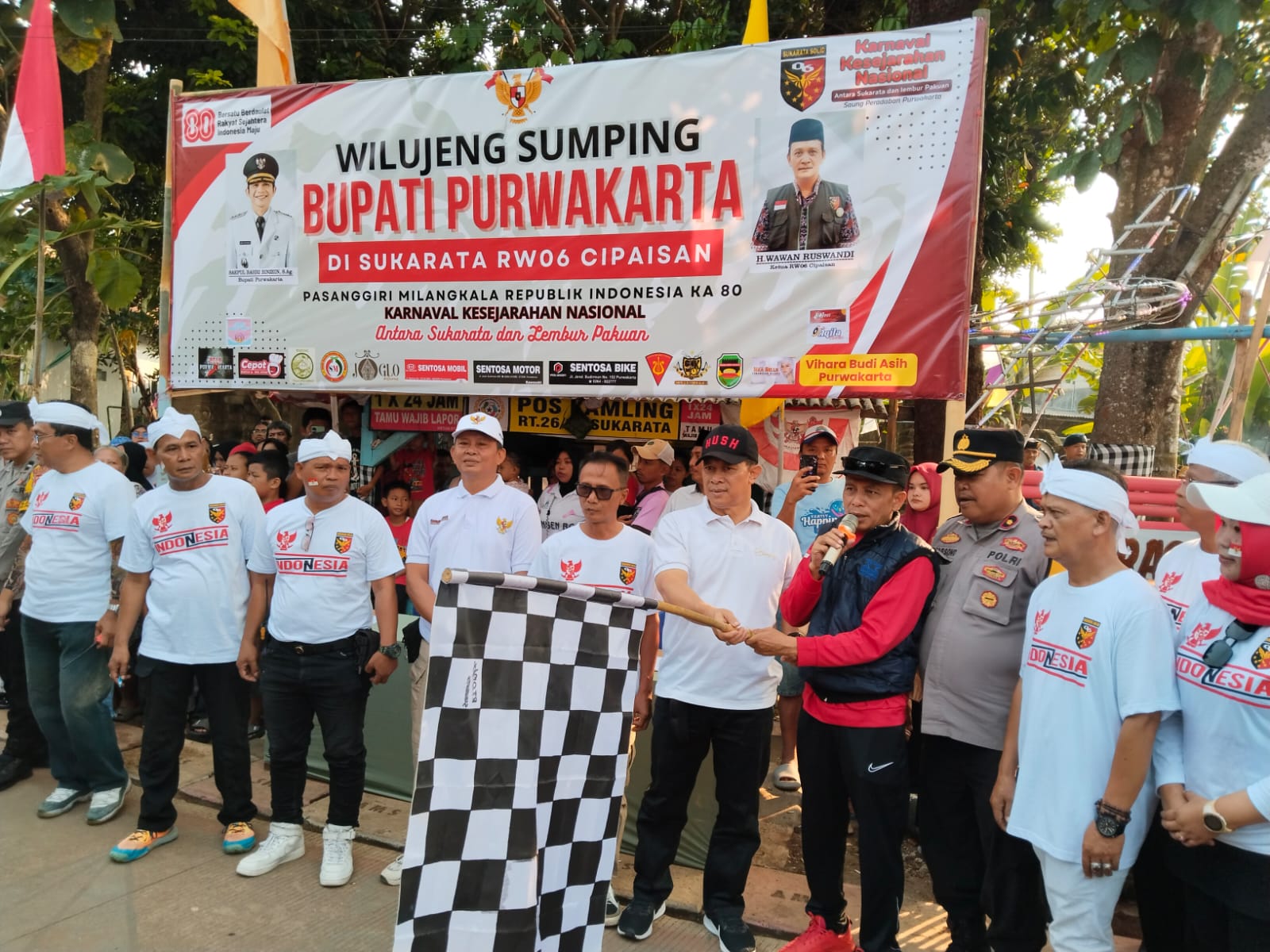 PURWAKARTA – Kapolres Purwakarta, AKBP I Dewa Putu Gede Anom Danujaya, diwakili Kapolsek Purwakarta Kota, Kompol Marsononhadir di panggung kehormatan menyaksikan Karnaval Kesejarahan dalam rangka Memperingati HUT Kemerdekaan RI Ke-80 Tingkat RW. 06 Sukarata, Kelurahan Cipaisan, Kecamatan Purwakarta, Kabupaten Purwakarta, pada Minggu, 24 Agustus 2025.